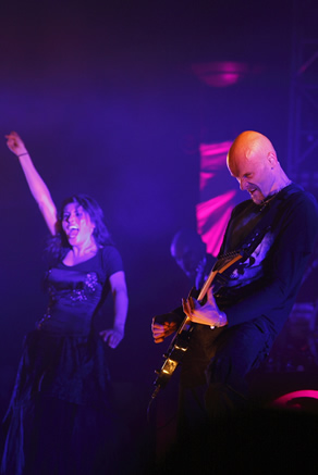 Some of the must-sees gathered already on Thursday: Within Temptation, Portion Control and Front Line Assembly. Dean Piavani and John Whybrew of Portion Control revealed that a new proper album is to be expected during the autumn. FLA did a great gig and it looked like the entire band was having a lot of fun on stage. Friday was the night for Hocico, Infected Mushroom and IAMX. It was the first time for the Mexican hardcore EBM-duo Hocico to enter the festival stage at Arvika, and they pulled off their show as they usually do: filled with power and positive anger. IAMX played the small Andromeda stage, but it was filled with people, and Chris Corner seemed very happy with the response he got. Everyone sang along and jumped like mad men to his exquisite electro. Israel´s Infected Mushroom got a big crowd of course, who readily screamed furiously as soon as they heard the first drum beat.